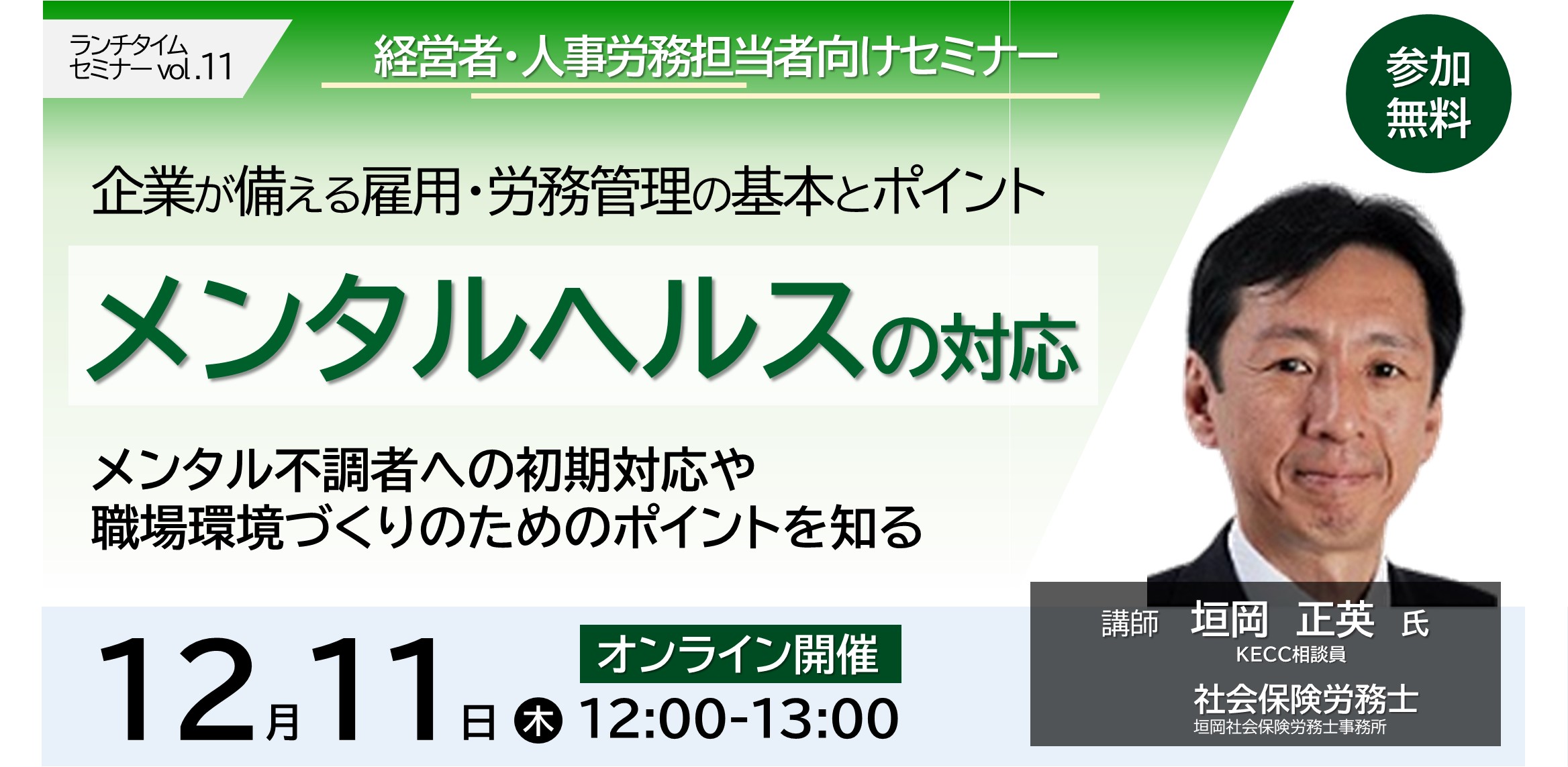 2025年10月22日(水)開催 【KECC第7回人事・労務セミナー】事業者が理解すべきメンタルヘルスに対する労務対策