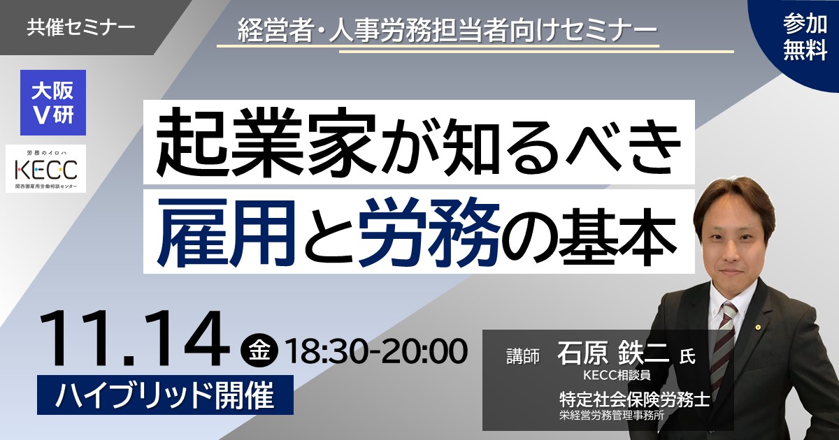 2025年11月14日(金)開催 【第234回大阪ベンチャー研究会(KECC共催セミナー)】起業家が知るべき雇用と労務の基本