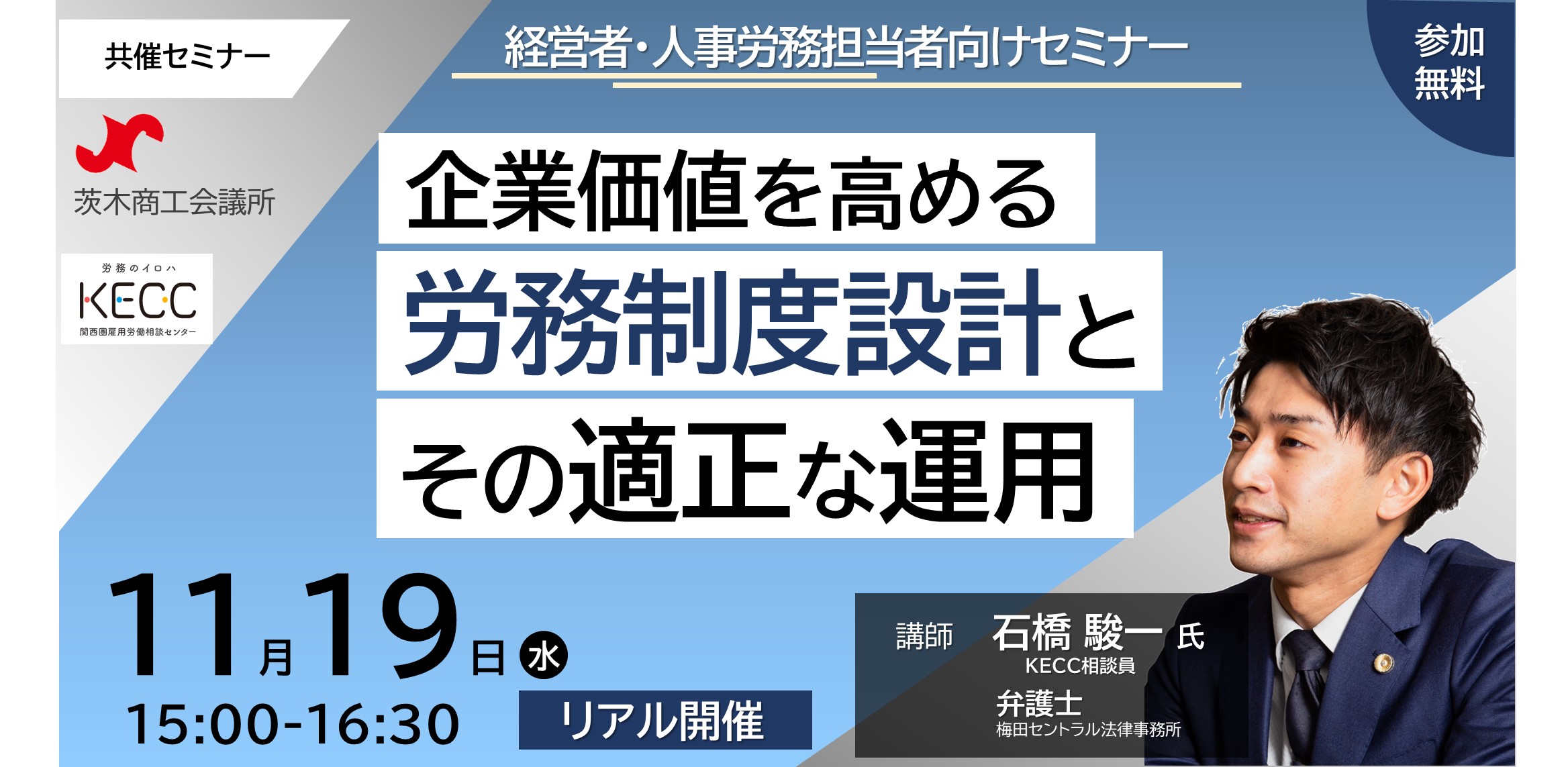 2025年11月19日(水)開催 【茨木商工会議所×KECC共催セミナー】企業価値を高める労務制度設計とその適正な運用
