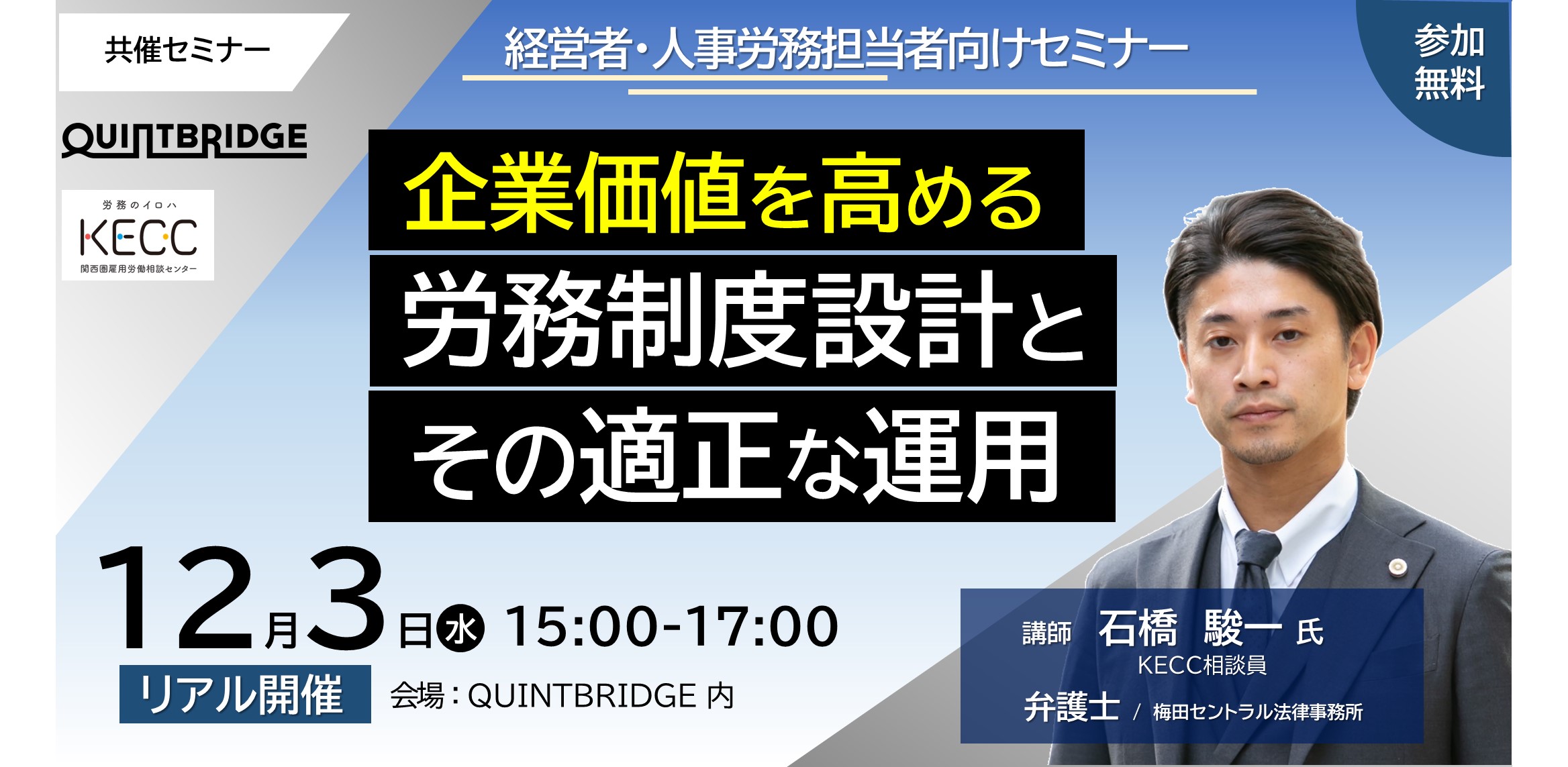 2025年12月03日(水)開催 【QUINTBRIDGE×KECC共催セミナー】企業価値を高める労務制度設計とその適正な運用