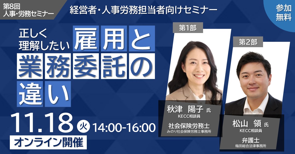 2025年11月18日(火)開催 【KECC第8回人事・労務セミナー】正しく理解したい雇用と業務委託の違い