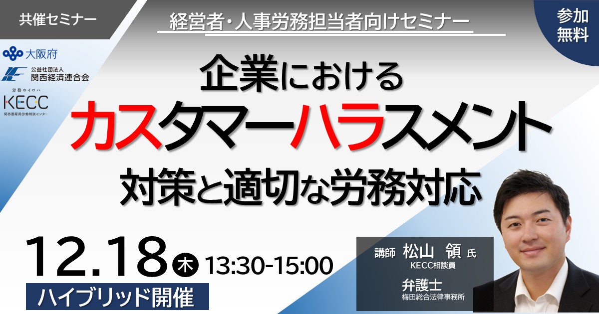 2024年12月18日(水)開催 【大阪府 × KECC共催セミナー】企業におけるカスタマーハラスメント対策と適切な労務対策