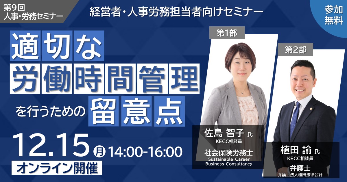 2025年02月26日(水)開催 【KECC第11回人事・労務セミナー】適切な労働時間管理を行うための留意点