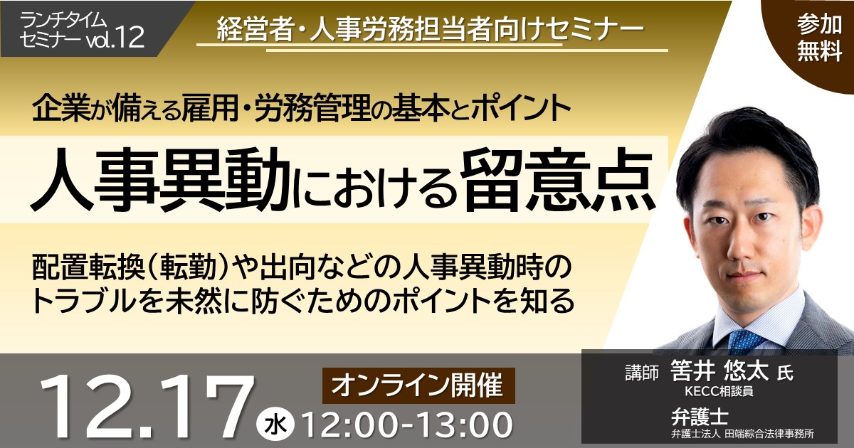 2025年06月17日(火)開催 【KECC第3回人事・労務セミナー】トラブルを防ぐ 人事異動における実務対応のポイント