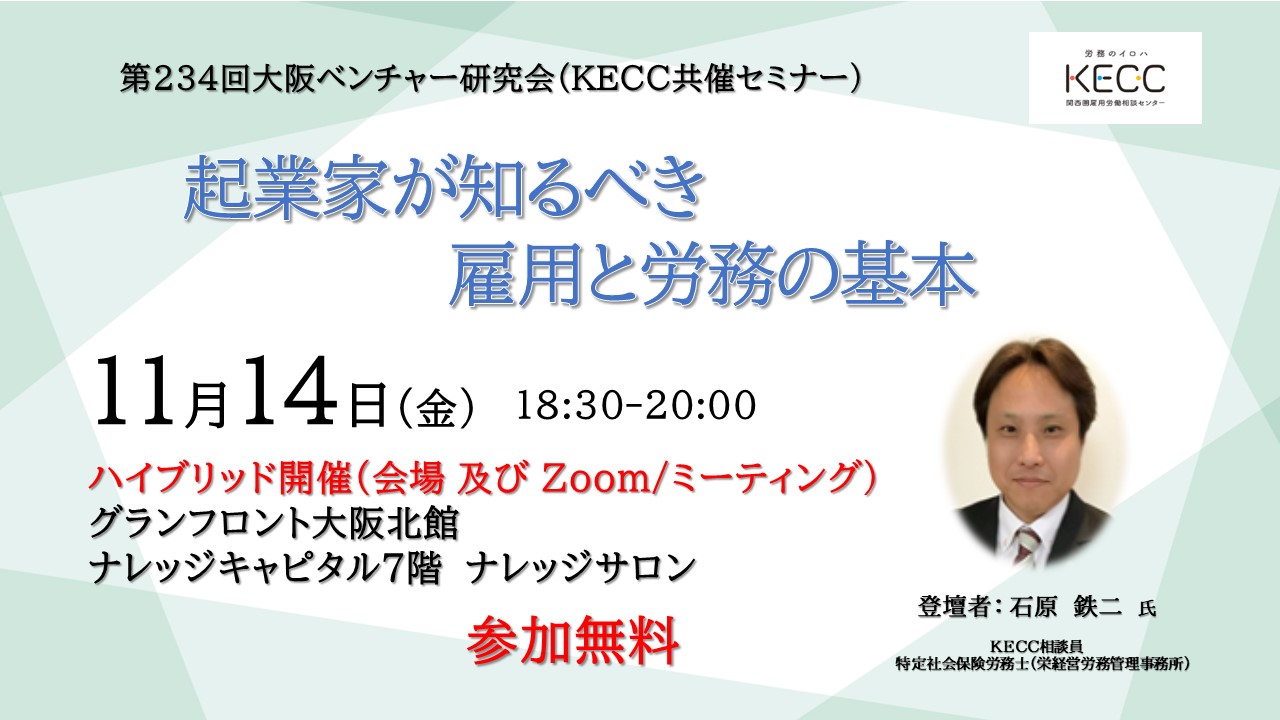 【第234回大阪ベンチャー研究会(KECC共催セミナー)】起業家が知るべき雇用と労務の基本