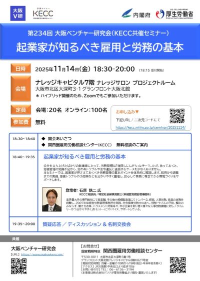 【第234回大阪ベンチャー研究会(KECC共催セミナー)】起業家が知るべき雇用と労務の基本
