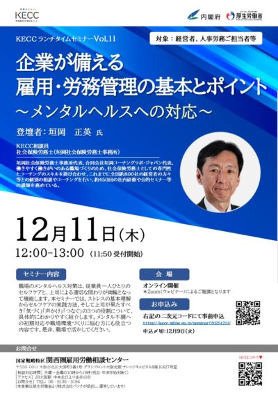 【KECCランチタイムセミナーVol.11】企業が備える雇用・労務管理の基本とポイント~メンタルヘルスへの対応~