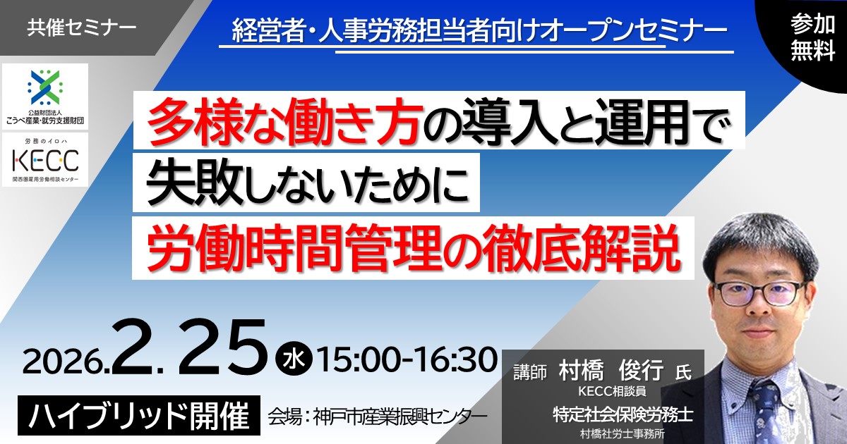 働き方が多様化する今、適切な労働時間管理は企業の喫緊の課題です。フレックスタイム、リモートワーク、短時間勤務、育児・介護休業制度など、新しい制度導入の「落とし穴」を知らずに運用すると、思わぬ労務リスクに直面します。本セミナーでは、多様な働き方を成功に導くための労働時間管理の基本と、見落としがちな具体的事例を解説し、明日から実践できる具体的な対策を徹底解説します。